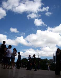 | We woke at 5:00 am on the 31st December 2009. Unfortunately it was raining. The rainfall in the Blue Mountains was fortunate because it put out the bush fire occurring in the area before we arrived. Most(90%) of the trees in the Blue Mountain are eucalyptus. During summer when it is warm, the leaves of the eucalyptus emit oil which are highly flammable and can start a bush fire. The vaporised eucalyptus oil in the air for this reason can make the scenery in the Blue Mountains like blurry. A tour guide said to us" It will not rain because it rained earlier". But during the tour, the weather changed drastically : it rained, and then stopped before it became sunny again. ※Blue mountain tour fee A$258 for 2 peason(paid by card 21,212yen) |