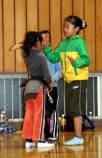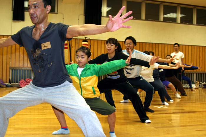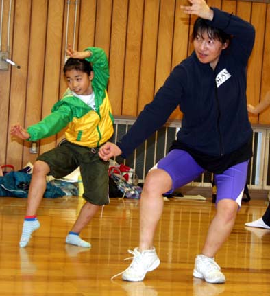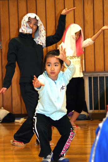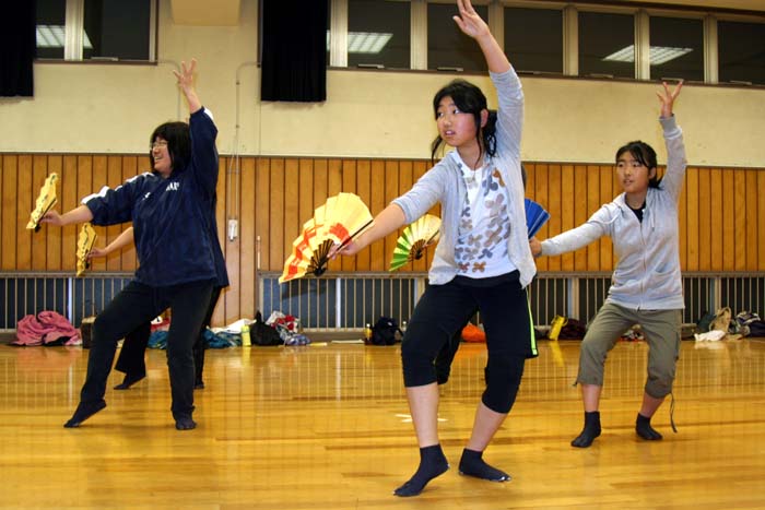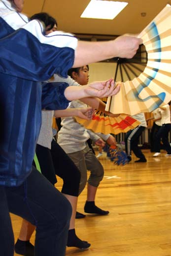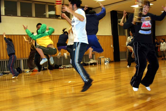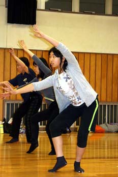 | ピンと張り詰めた指先、軽妙な足さばき、安定した腰、そして笑顔・・・その全てが一体となって、阿波おどりの型を作っていくのかなぁと、知らないなりにもレンズを通して、少しずつわかり始めた気がします。レンズを通さず、生の目で見ていたら、思わず踊りだしてしまいそうなお囃子が小気味よく体育館全体を満たしていました。 | ||