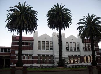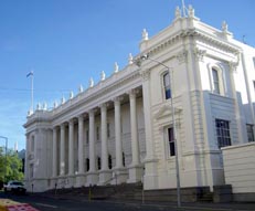 | nabeさんがホテルの場所を尋ねる為、車を降りたので、ふいに目を上げると、いきなり重厚な建物が目の前に飛び込む。ロンセストンは、19世紀前半の英国の田舎町をまねて作られたという。その古い町並みがしっかりと保存されている |