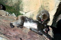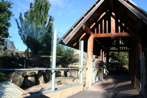 | ガラス張りのお洒落なサル園に10匹ほどのニホンザルがいる。サルになじみのないオーストラリアでは結構、人気があるらしい。nabeさんは真剣に毛づくろいをしている夫婦?ザルを羨ましそうに眺めていた(^^;) | |