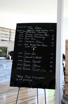 | ドライバーのため、飲めないわたしの横でnabeさんがテイスティング。「おいしいよ」ということで、1本記念に購入(2010年ピノノワール($28)) | |