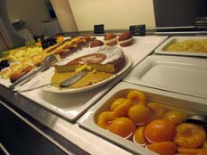 | 朝食は種類が豊富でおいしく、朝からシャンパン、ワインも無料で飲み放題。特にデザートの種類の豊富さに大満足 | イェラチッチ市場で買った果物 | |