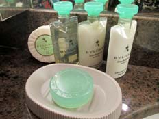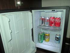 | ミニバーには無料のソフトドリンク。毎日補充してくれる | アメニティはブルガリ。高級品がさりげなく置かれている | 金庫の開閉はどちらも4つの数字を入れ、右下のエンターを押すだけ | |||
