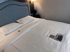 | 夕方のベッドメイク後には明日の新聞とチョコがベッドの上にある | |||
