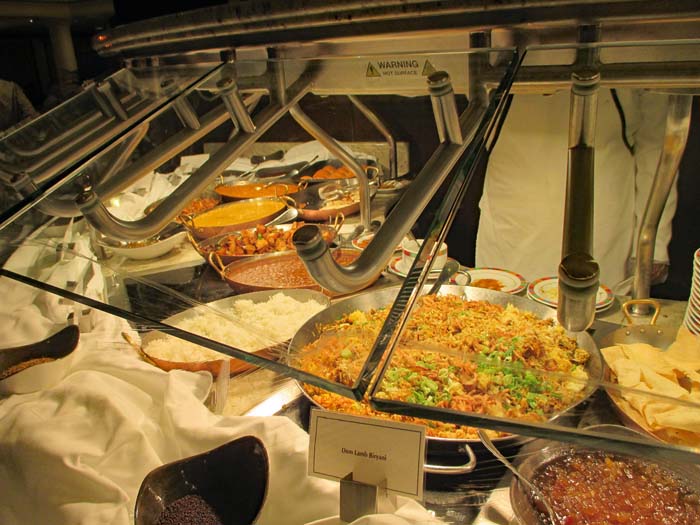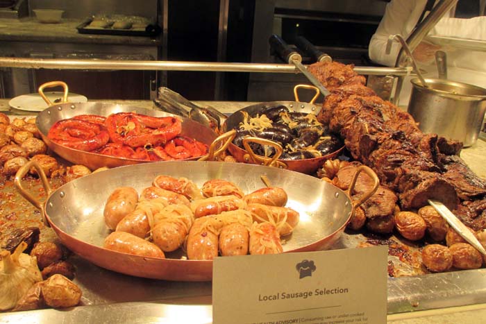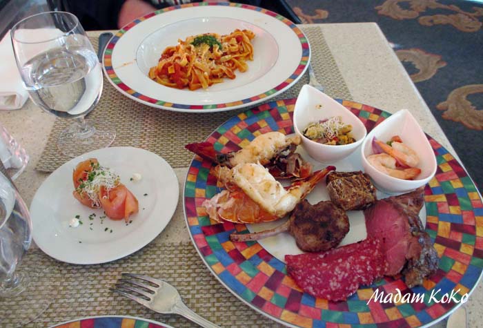 | 予約なしで行ける「グランドレストラン」は最初の2回でやめてしまった。実はカフェテラスの料理はグランドレストランがコース料理で出すお料理がそのまま提供されている。少しずついろいろな種類の料理を食べるにはテラスカフェのほうが俄然メリットが多いことに3日目、気づいた | |||