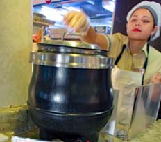 | ベトナム料理がテーマの日はいろいろなフォーが提供される。スタッフさんに注文すると、サンプル通りの丼ぶりを作ってくれる。nabeさんはいそいそと注文していた |