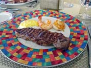 | テラスカフェの一画にあるグリルでは注文でロブスターやエビ、肉などを焼いてくれる。朝はオムレツを注文して、昼や夜はロブスターとラムチョップを焼いてもらった。プリプリのロブスターにバターをかけて食べるのがやみつきになってしまい、最初の頃は日に何度もロブスターを注文した(^_^;) |