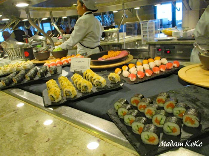 | さすがに1週間ぐらい経つと「食べる」ことにうんざりしてくる。食欲がなかったり、選ぶのが面倒になった時はお寿司にした。さっぱりとしているので、なんなく胃袋に収まる。他のゲストたちも食べすぎで胃がバテるのか、お寿司人気は高かった | |||